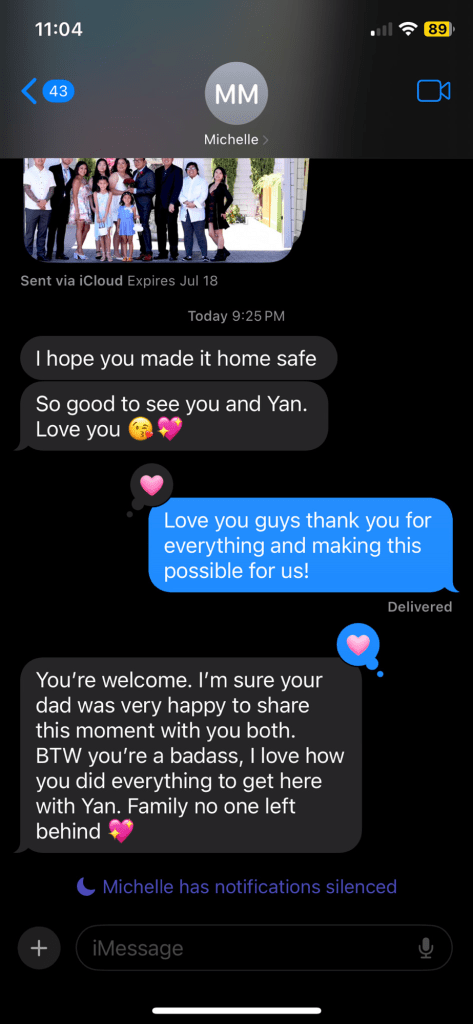 Sam drives us to the airport with a 5 minute traffic delay with an anxious baby in the backseat. We arrive with 10 minutes to spare before boarding closes and print our tickets downstairs, proof of manifest regardless of how late our check-in was. Next steps, physically check-in at our Gate to receive our golden tickets. We rush to TSA with ID and printed proof of manifest in hand. I make it in with Yan just behind me, taking off my shoes and rushing through their security screening protocols. I look back and Dari has vanished into thin air leading to my 5 minutes of frantically searching, calling and watching the seconds pass. There’s no service.. the odds beginning to stack against this event. I approach a security agent for the whereabouts of my sibling, giving the descriptions of his profile and current situation. An agent who walks humbly towards the older agent in charge of identification, adds more minutes against us. In short strides, he comes to inform me that their agent sent Yan back to ticketing. That was where we just came from, a counterproductive call and a mistake of instruction on their part. I tell him I’ve no cell service to which he tells me that upstairs has better coverage. I run. Following the signage leading to our Gate because from there I’ll buy us some time back. I’m bolting as folks stare and laugh but to my advantage I arrive in the nick of time as Spirit agents are getting ready to close the doors. Two minutes before boarding commences, I give them my ticket while giving my whole spiel. It turns out that Yan could have gone through TSA regardless to no fault on our end yet departure is fifteen till, the next flight out being that evening and not an option. Through my tears I say we need to go to our Dad’s ceremony and I sit down dejected with my hands covering this look. When I call Yan and tell them about the news, he is rushing with a panic to their voice of where they are while the gatekeepers are throwing solutions to our conversation in real time. “Tell the TSA this”, “Use the mobile pass!” then the phone cuts out. I pray that Yan made it to TSA, the area of no cell service. “Well it looks like only one sister is going on this plane” as the agents get impatient but our Dad calls and I break down, solemnly apologizing for so many things; The ticket prices, our efforts and how I’ve failed. He responds calmly that “It’s okay because you’re going to make it. Don’t worry” while also hearing the Spirit gate agents huddled among themselves, “we bring the Spirit, this is OUR gate!” Now several are coming from the ramp and questioning just what is going on and I feel dismay for this spotlight of what should be normal status quo turned frenzy for us, but for them would seem like just a normal day on the job. We’ve only got five minutes until take-off and I’m telling them that my brother is coming, only now they can’t buy us anymore time. I walk to the middle of the terminal walkway staring down the long hall waiting for Yan to turn the corner any second, the agent who demanded the gate finally says “we need to close the doors now I’m sorry” until we see Darian booking a sharp turn. The agent yells “oh they’re running! And fast too!”. Now I’m being ushered quickly into the doors by another nice agent to quickly set foot onto the ramp to secure my seat. I walk onto the plane and see everyone’s faces of impatience and judgments. I check my phone for how much of a delay this caused everyone to see Darian rush into the plane while I help grab their belongings and stuff it under the front seats. It didn’t feel like triumph at first, Darian is crying and I give him a big hug with reassuring words to quell both of our beating pulses. Shortly after, he falls asleep and add my good luck charm to their water bottle. It’s just the start to our whirlwind Wednesday but by then we were met by the comforts of our Dad from a long time no see. After a grand time and a crazy experience we make our flight back home. I drop off my brother and am able to find the comfort of my bed midnight to tell the tale. I’d like to think everyone went to bed having tied up any loose feelings from time apart.